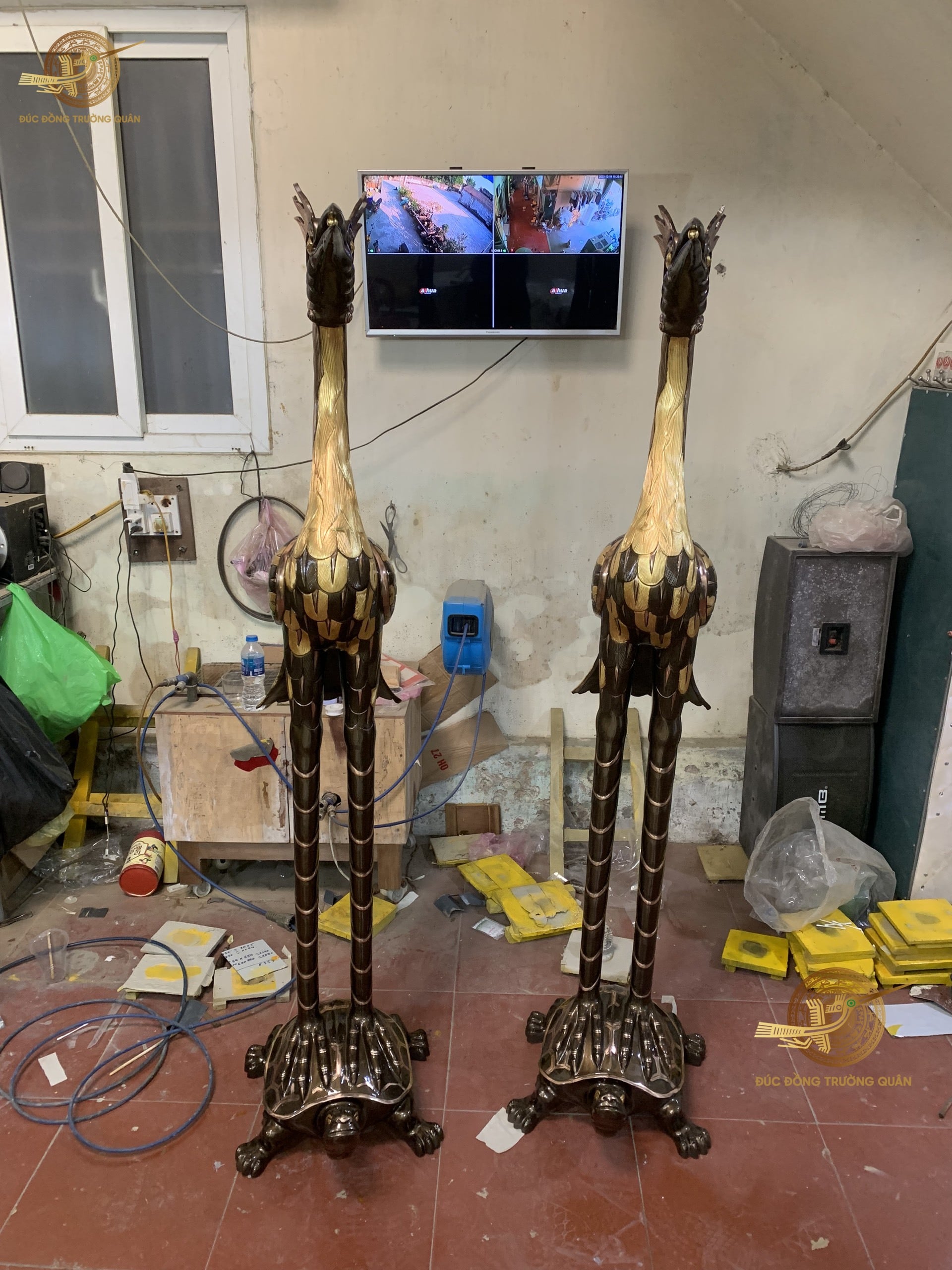 sản phẩm đôi hạc 1m97 bằng đồng điểm vàng 24k hoàn thiện