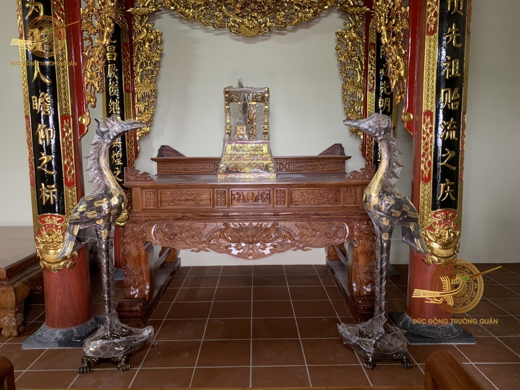 - Đối với không gian nhà thờ rộng, hay đền chùa, điện miếu... hạc được bày đối xứng 2 bên ban thờ hoặc các lư đồng cỡ lớn.