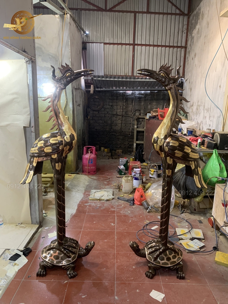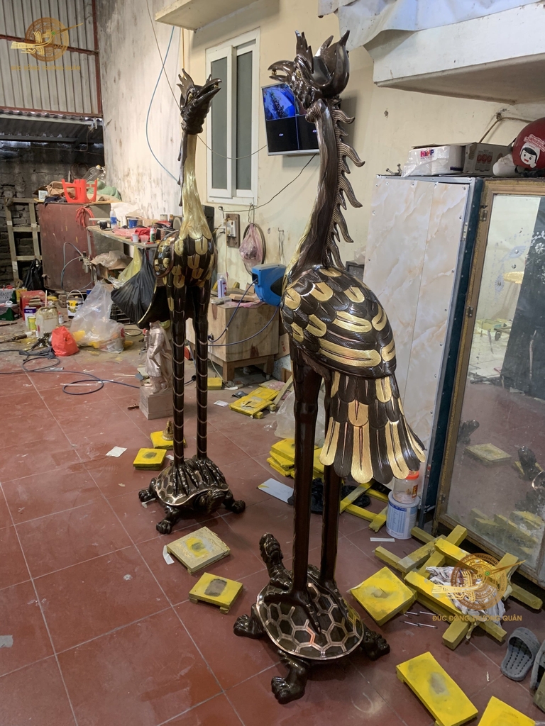 Quy trình đúc hoàn thiện và dát vàng đôi hạc bằng đồng 1m97 cầu kỳ bởi những nghệ nhân tài hoa, là sản phẩm nghệ thuật có giá trị cao cấp nhất tại Đúc Đồng Trường Quân. Liên hệ với chúng tôi ngay khi bạn có nhu cầu nhé!