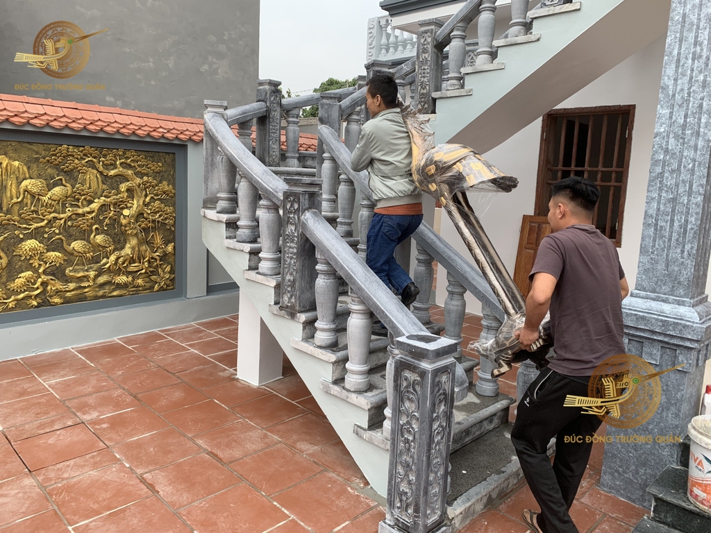 vận chuyển lắp đặt đôi hạc 1m97 bằng đồng dát điểm vàng 24k