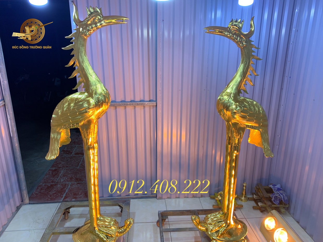 Ý nghĩa tạo hình của đôi hạc thờ bằng đồng 1m76 dát vàng 24k