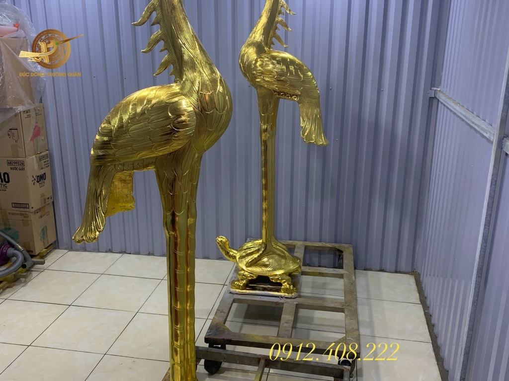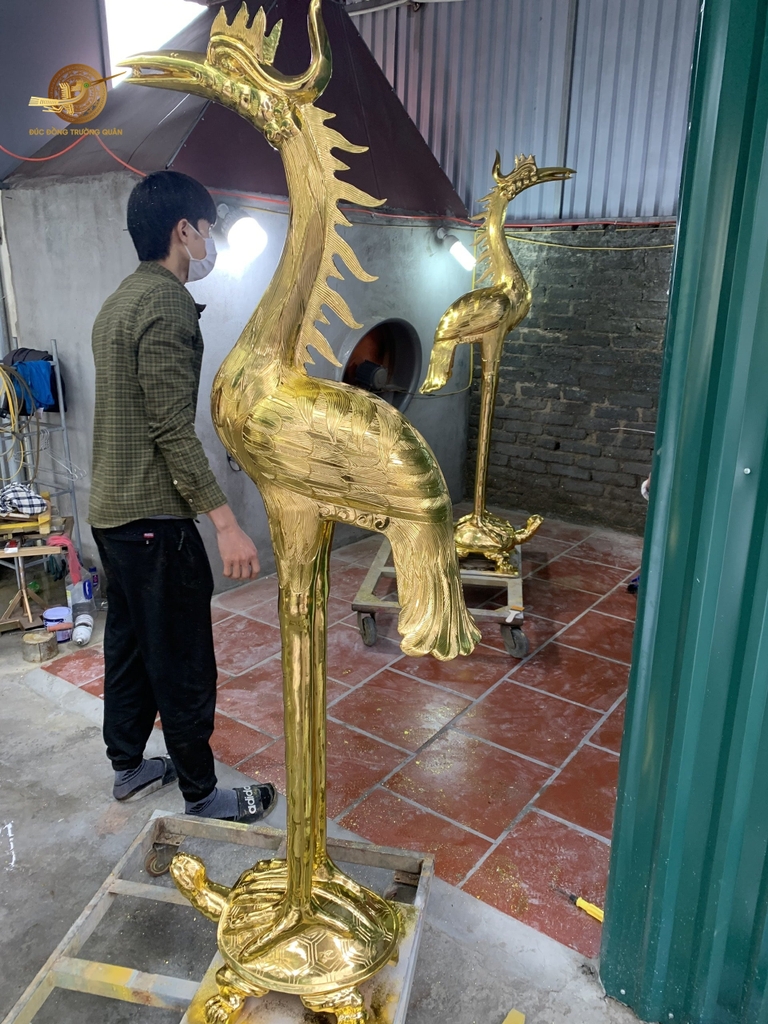 Quy trình đúc hoàn thiện và dát vàng đôi hạc bằng đồng 1m76 cầu kỳ bởi những nghệ nhân tài hoa, là sản phẩm nghệ thuật có giá trị cao cấp nhất tại Đúc Đồng Trường Quân. Liên hệ với chúng tôi ngay khi bạn có nhu cầu nhé!