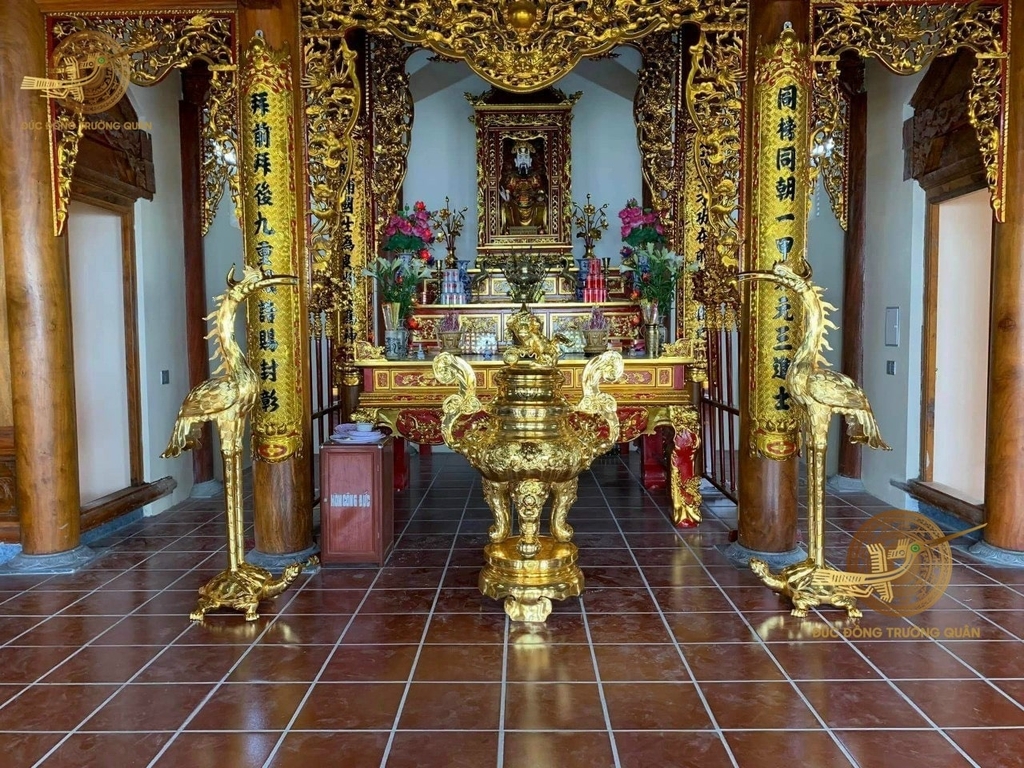 Đôi hạc bằng đồng 1m76 dát vàng 24k được đặt tại không gian thờ