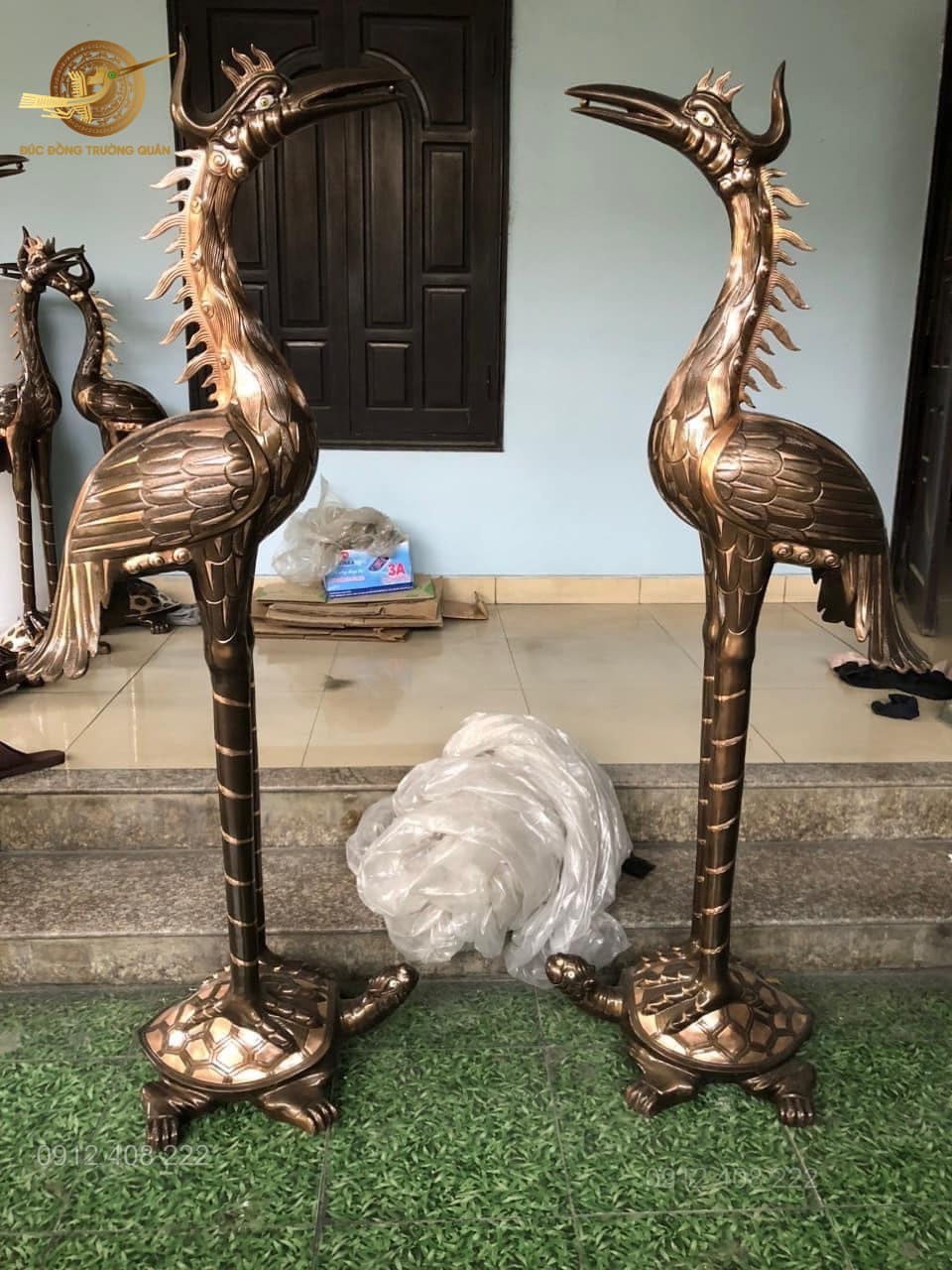 đôi hạc bằng đồng 1m97 được đặt tại nhà thờ tư gia
