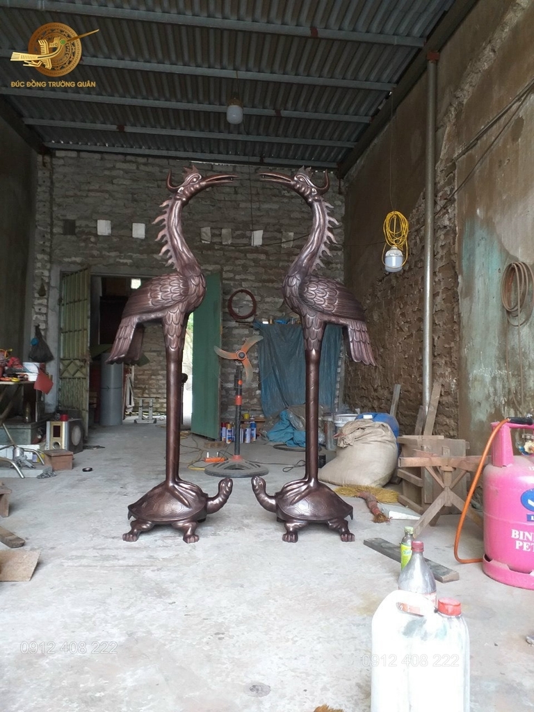 đôi hạc bằng đồng được kiểm tra kĩ trước khi rời xưởng sản xuất