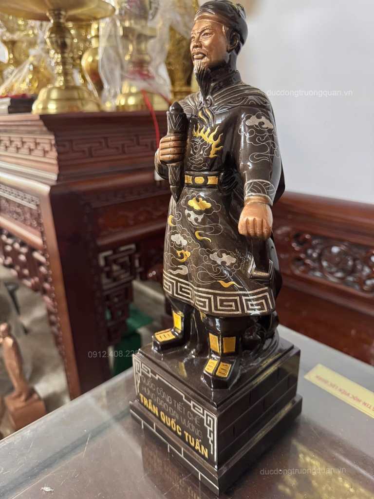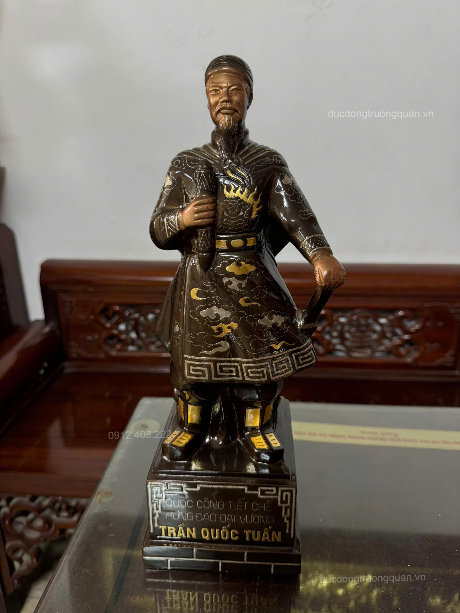 - Tên sản phẩm: Tượng Trần Hưng Đạo Bằng Đồng 38cm Khảm Tam Khí