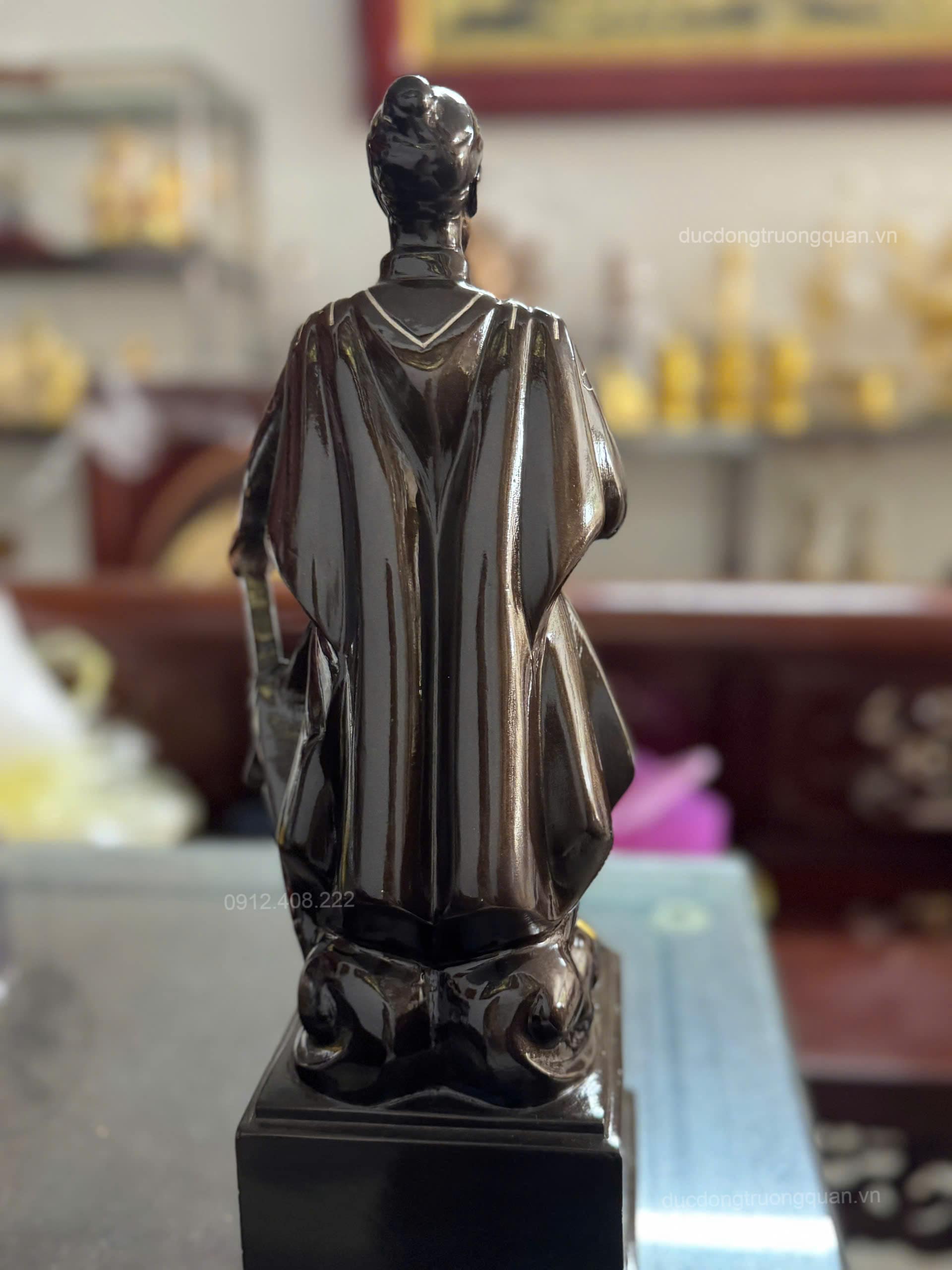 Tượng Trần Hưng Đạo bằng đồng 38cm khảm là dòng sản phẩm cao cấp, có kích thước vừa phải thích hợp để trang tại bàn làm việc hoặc đặt tại kệ tủ.