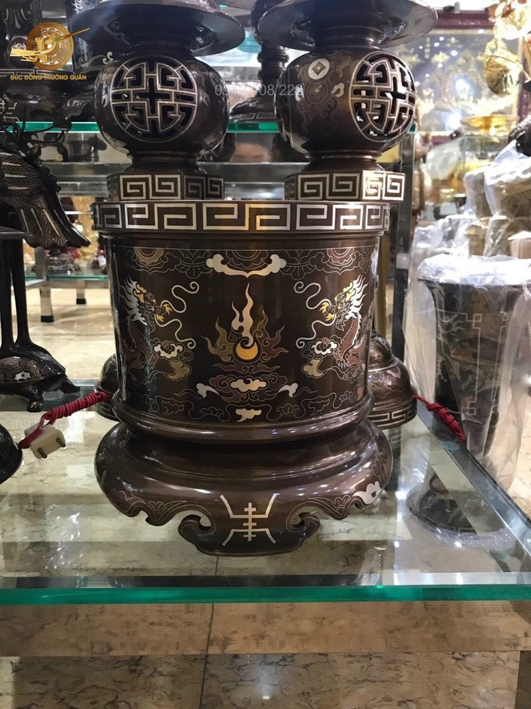 Quy trình đúc hoàn thiện và khảm ngũ sắc bát hương đồng cầu kỳ bởi những nghệ nhân tài hoa, là sản phẩm nghệ thuật có giá trị cao cấp nhất tại Đúc Đồng Trường Quân. Liên hệ với chúng tôi ngay khi bạn có nhu cầu nhé!