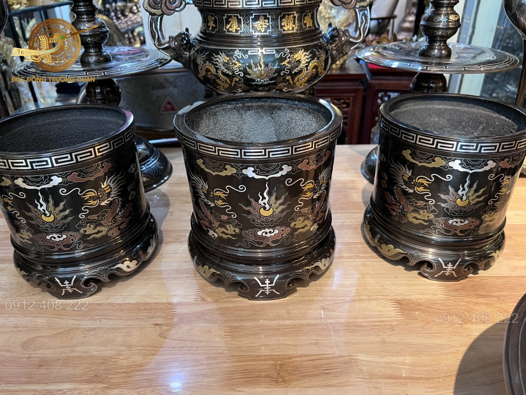 bộ 3 bát hương đồng khảm ngũ sắc 20cm