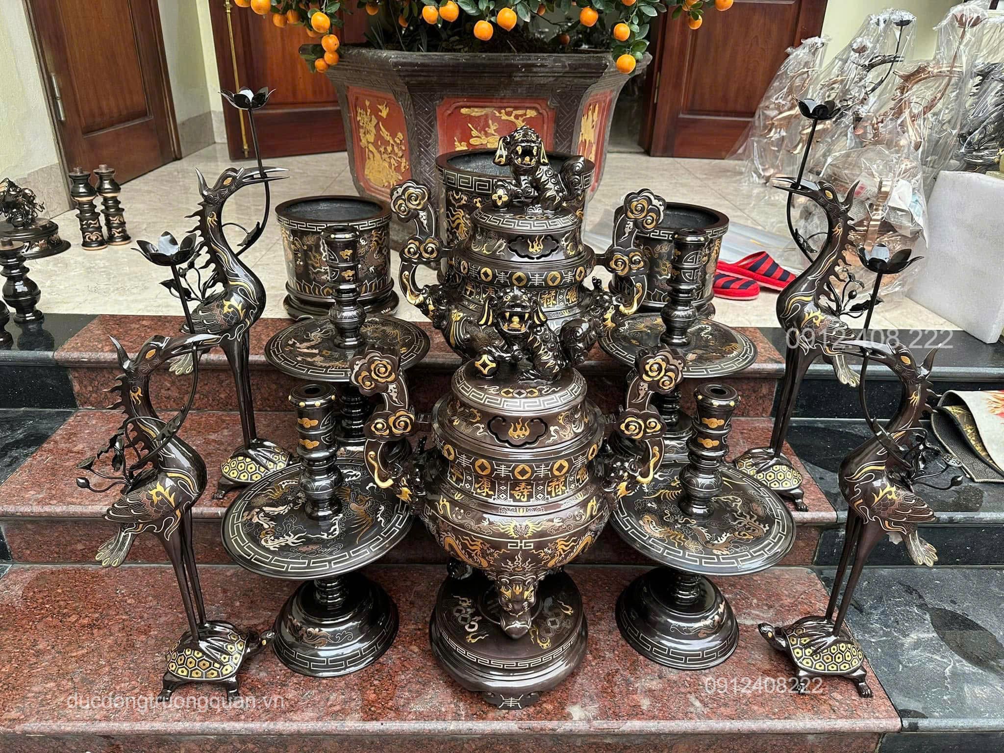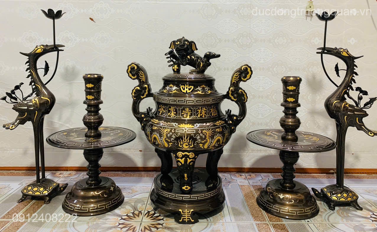 - Thành phần: 01 đỉnh đồng, 02 hạc thờ, 02 nến thờ.