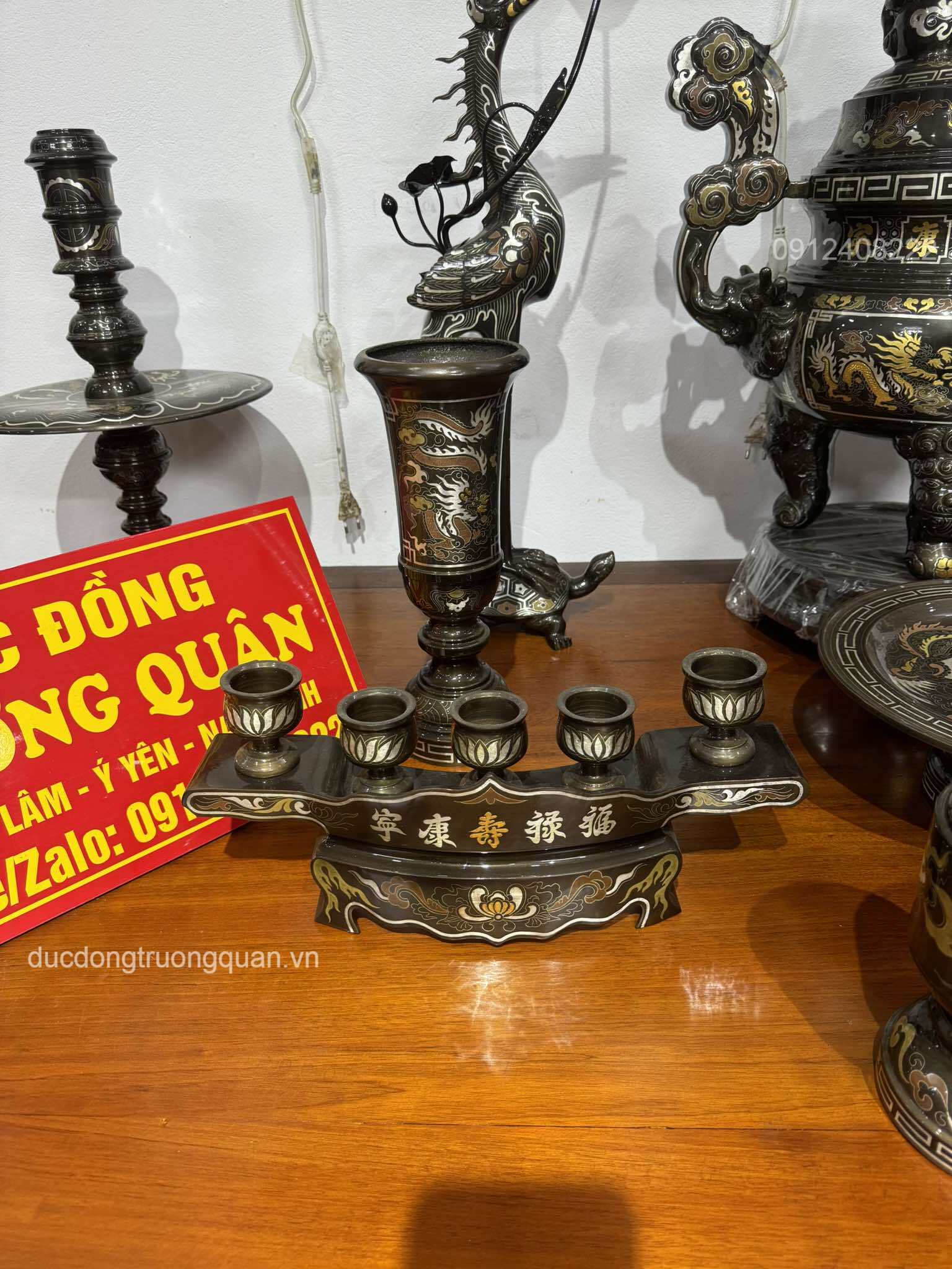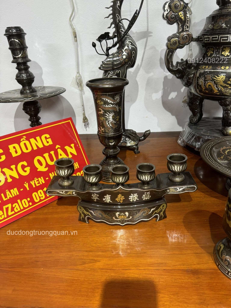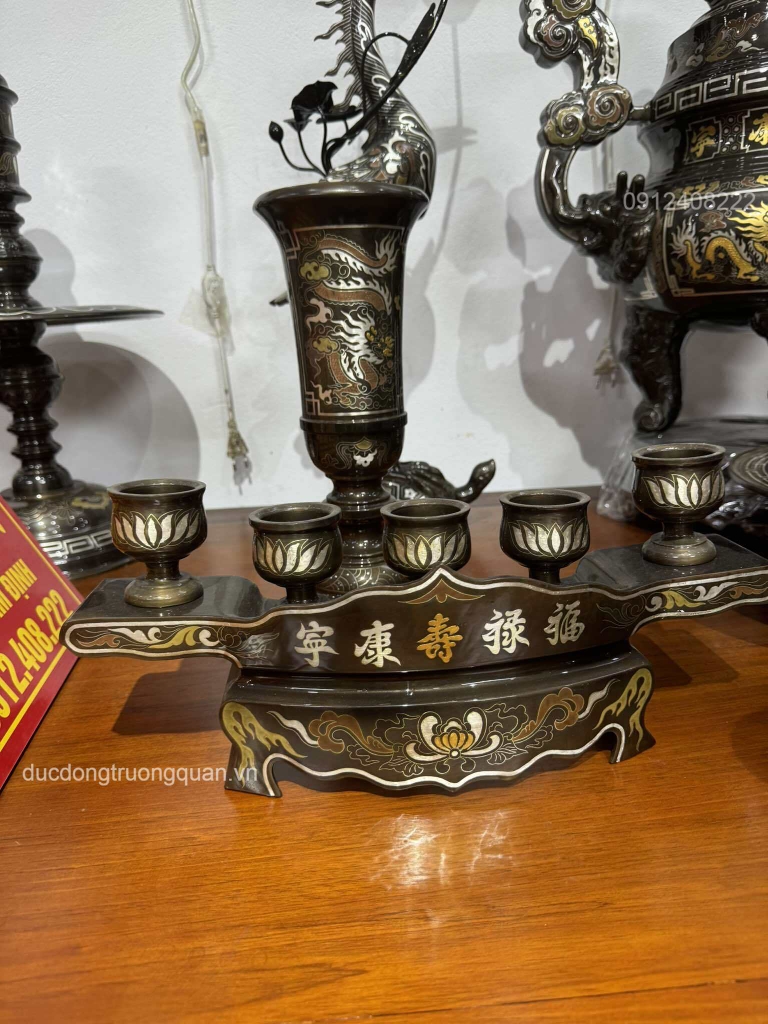 Bộ ngai chén 5 bằng đồng khảm ngũ sắc