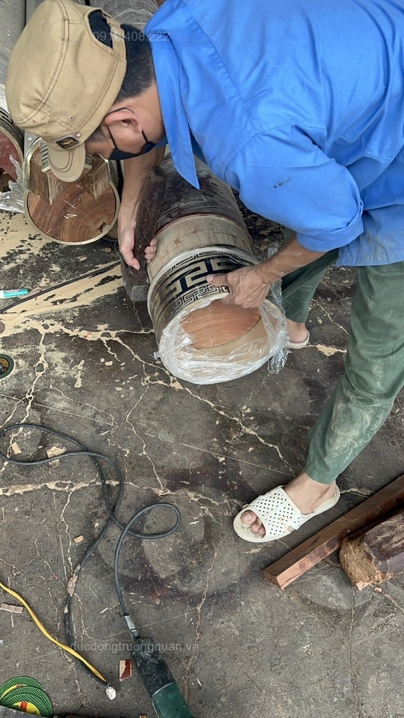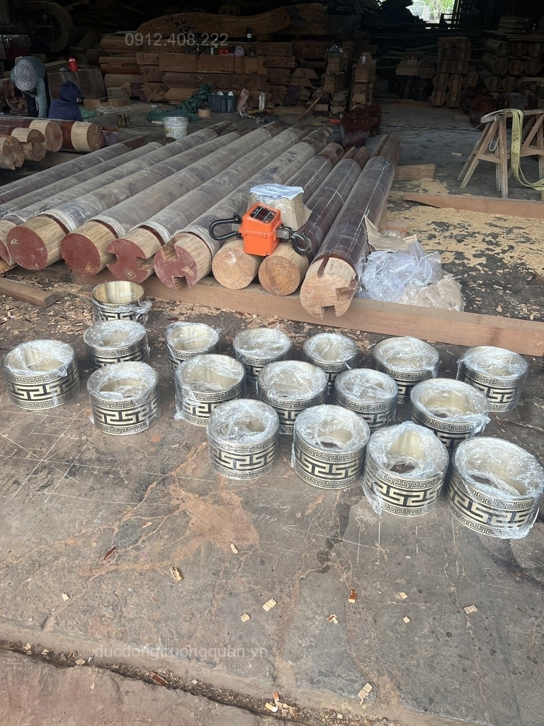 Sau khi hoàn thiện chân cột sẽ được cơ sở bên Đúc Đồng Trường Quân chuyển tới xưởng gỗ để gia công lắp đặt.