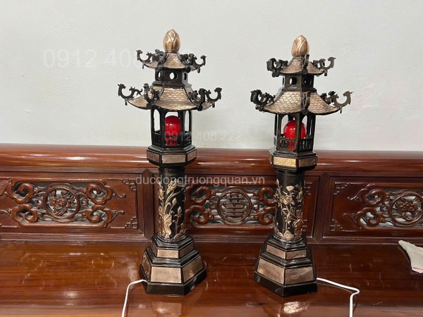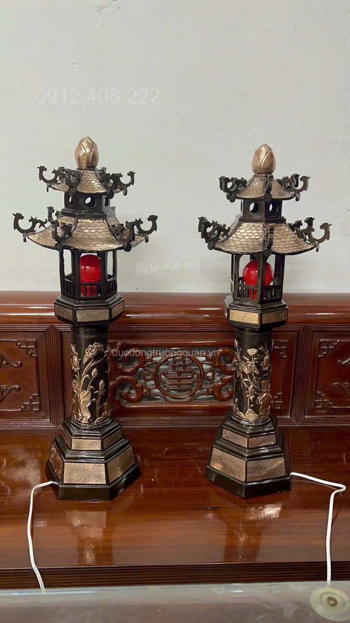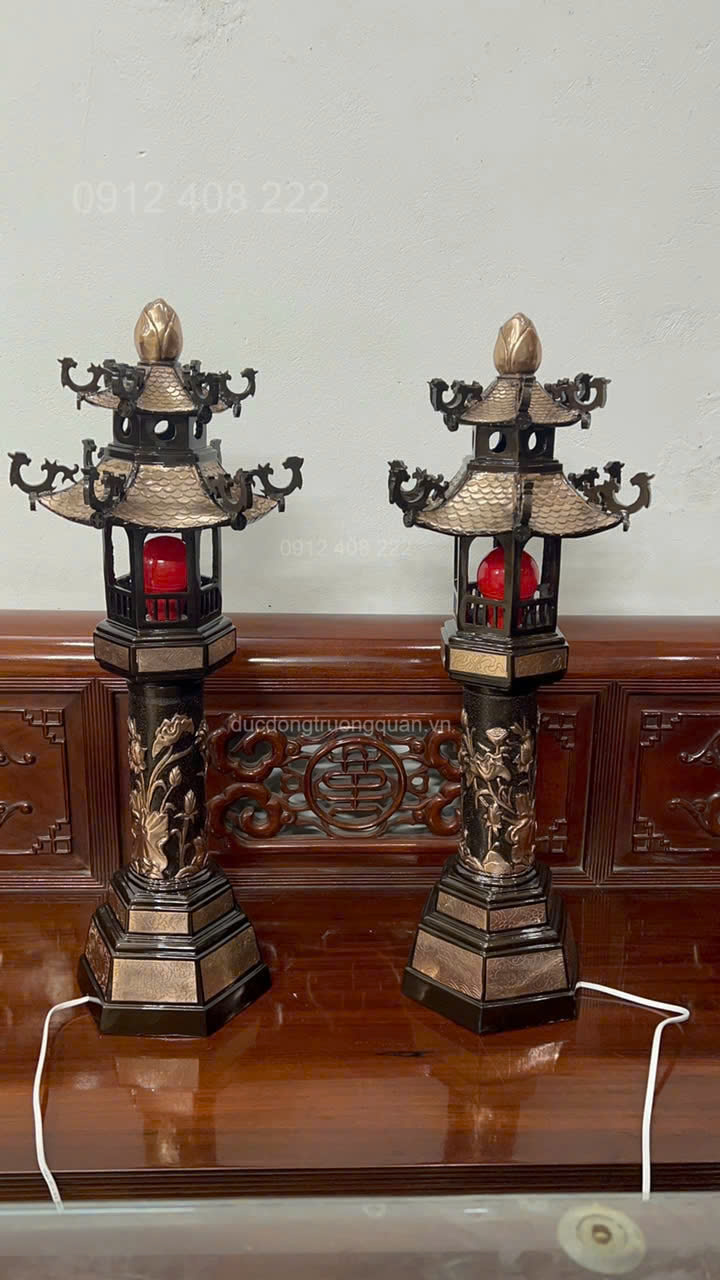 - Tên sản phẩm: Đôi Đèn Thờ Hình Mái Chùa Bằng Đồng