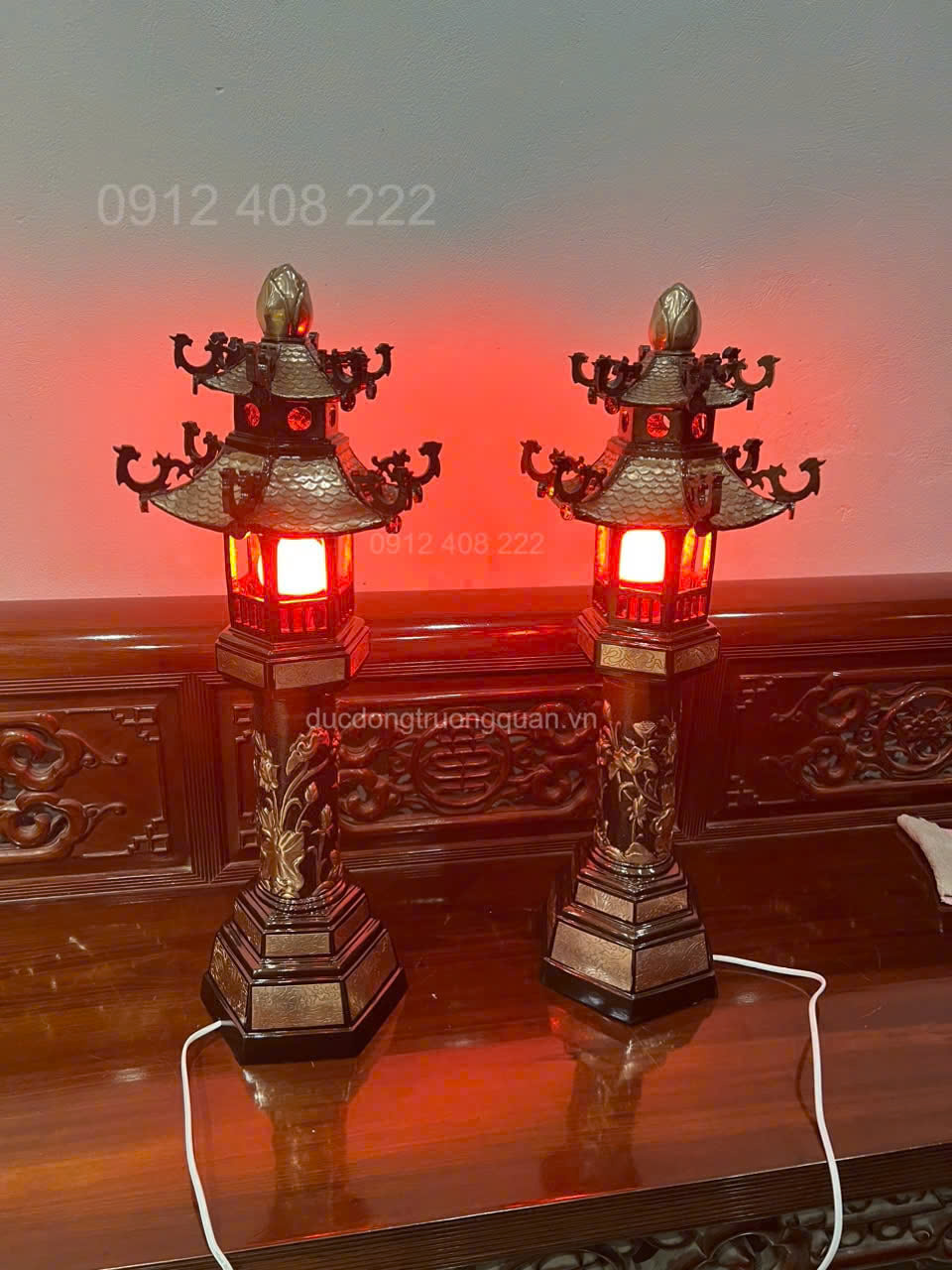 Chi tiết sản phẩm đôi đèn thờ bằng đồng đỏ cao 68cm