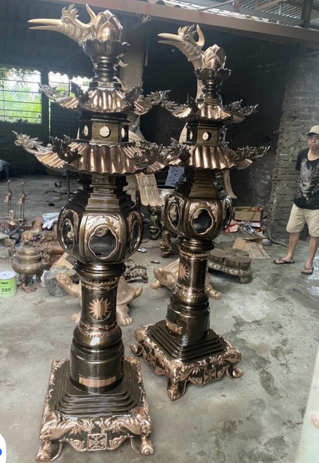 Đôi đèn thờ bằng đồng đỏ cỡ lớn cao 1m76 trọng lượng 260kg là đồ thờ tinh xảo đẹp trang nghiêm, rất được ưa chuộng với giá trị phong thủy sâu sắc. Tác phẩm được Đúc Đồng Trường Quân chế tạo kì công từ đồng nguyên chất với hoa văn đầy tinh tế cùng những nét chạm đúc công phu, đậm đà giá trị truyền thống!