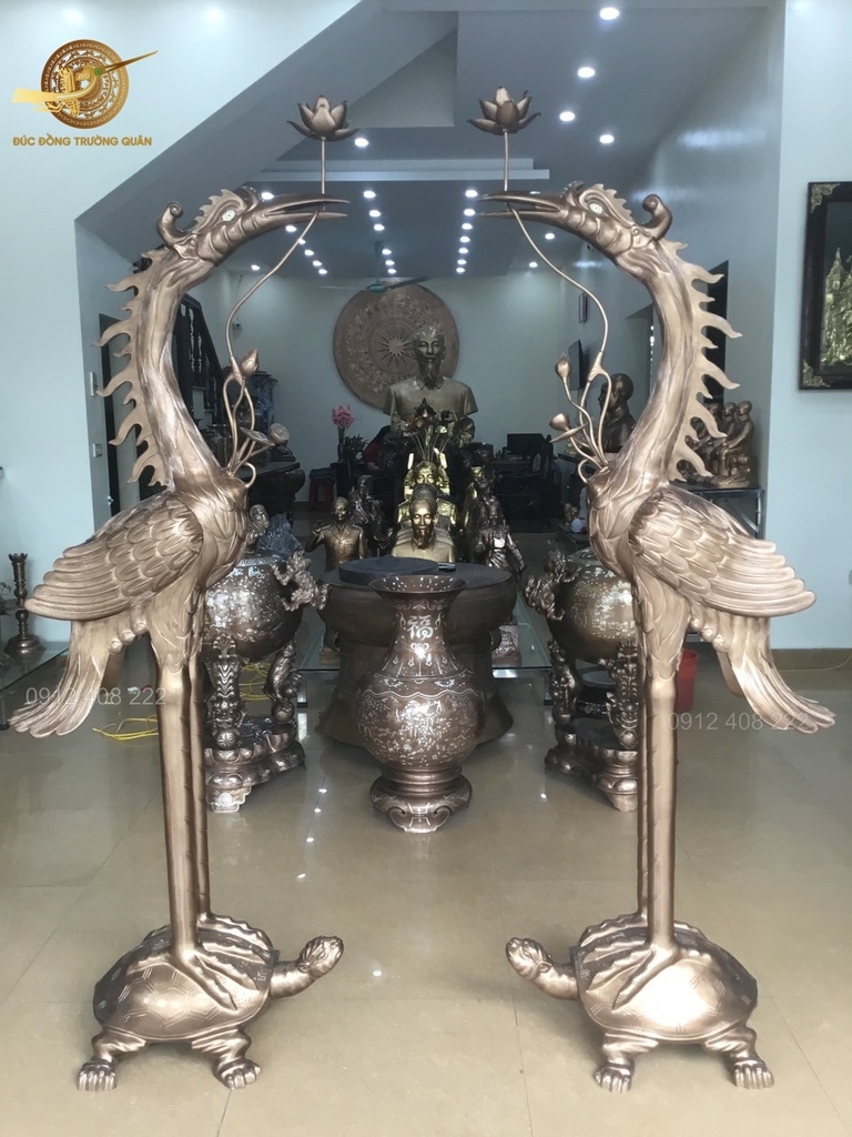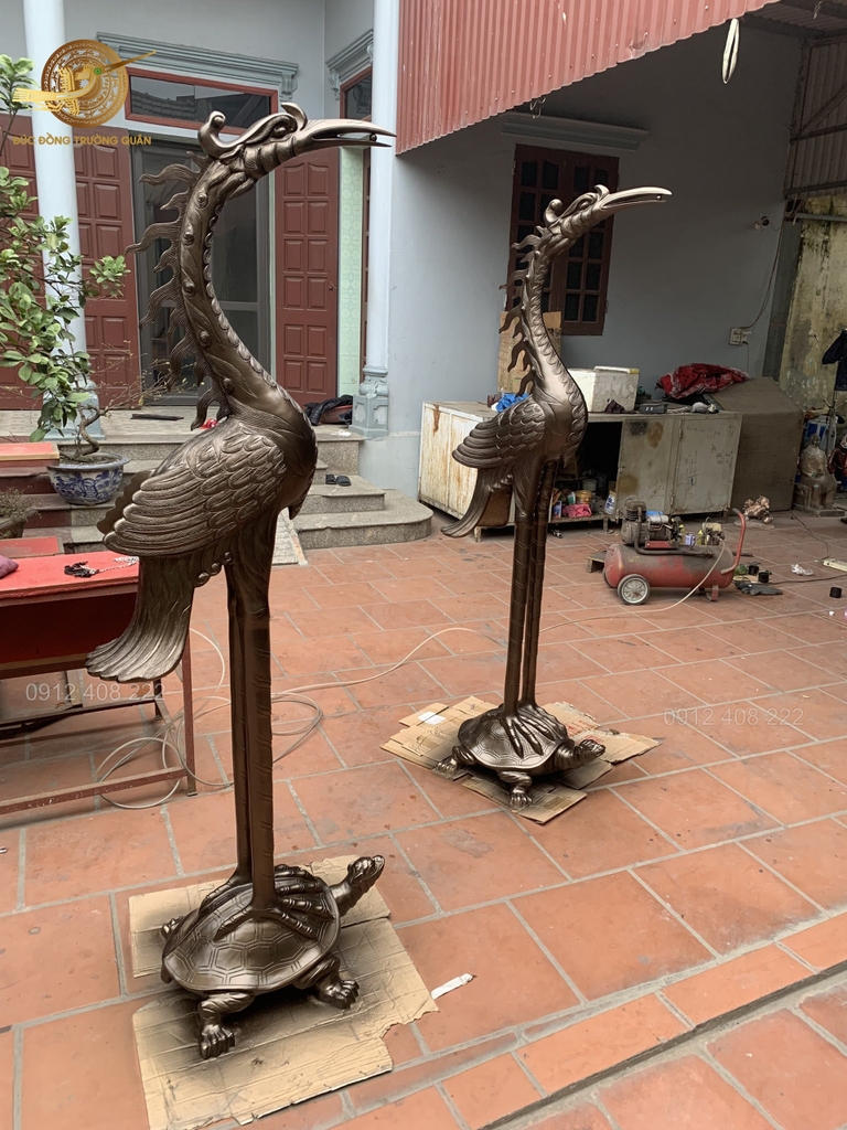 Quy trình đúc hoàn thiện đôi hạc cánh tiên bằng đồng 1m97 cầu kỳ bởi những nghệ nhân tài hoa, là sản phẩm nghệ thuật có giá trị cao cấp nhất tại Đúc Đồng Trường Quân. Liên hệ với chúng tôi ngay khi bạn có nhu cầu nhé!
