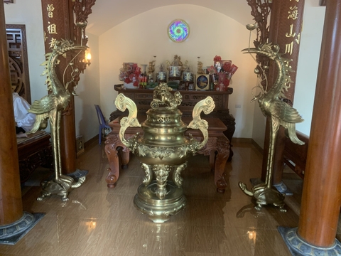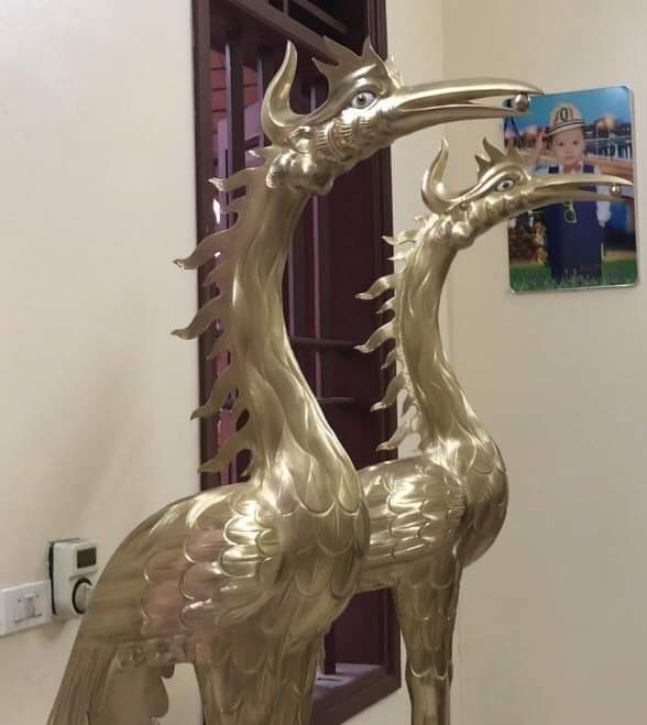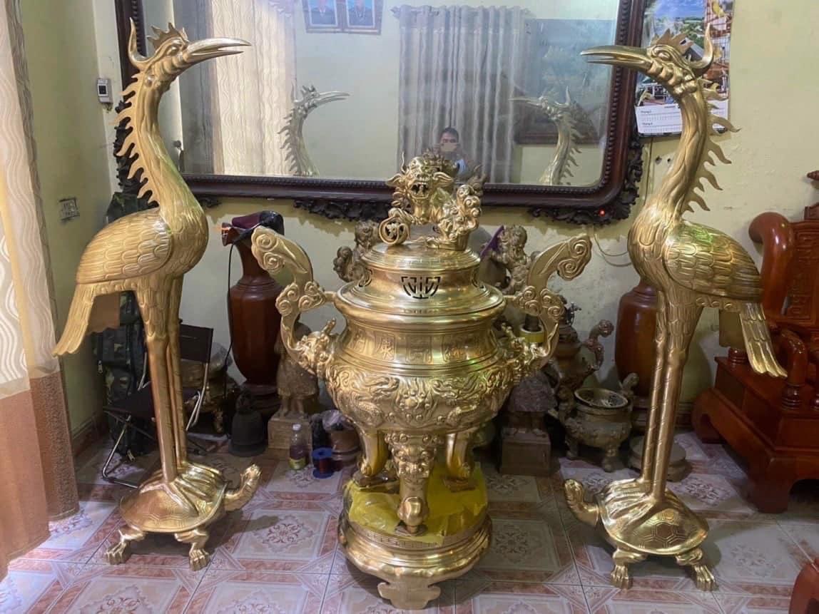 Đôi hạc đồng vàng cao 1m97 được đúc từ vỏ đạn cát tút được đặt tại nhà thờ tư gia tại Thuỷ Nguyên-Hải Phòng.