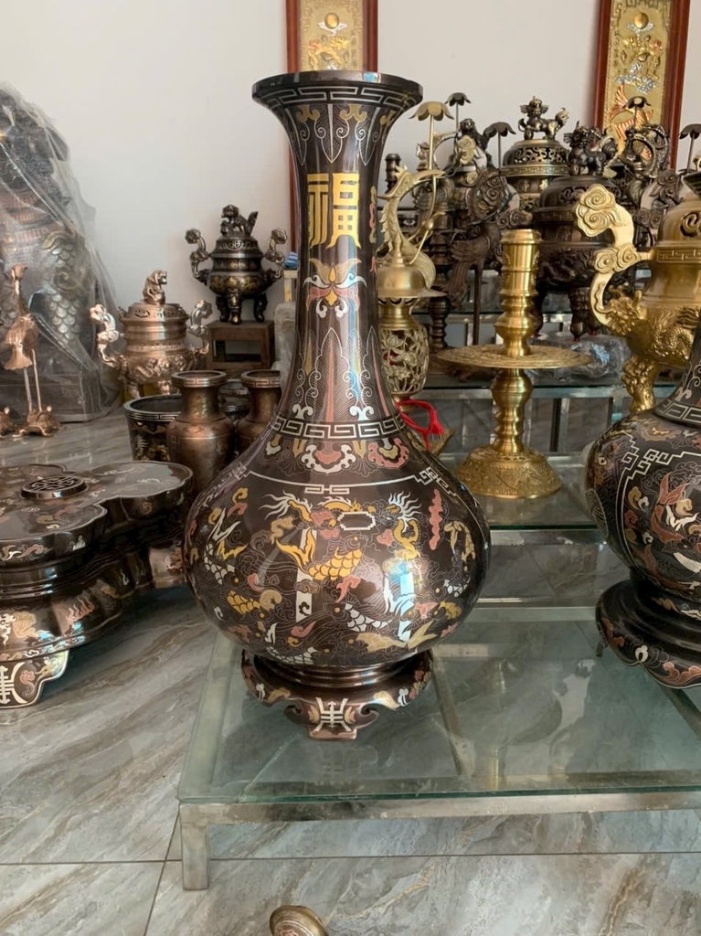 Đôi lọ hoa củ tỏi khảm ngũ sắc với đủ khíc thước từ 38cm...
