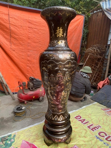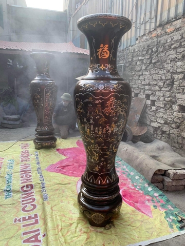 Đôi Lộc Bình bằng đồng đỏ cao 1m76, được đúc thủ công và khảm tam khí,trọng lượng đôi lộc bình nặng 190kg
