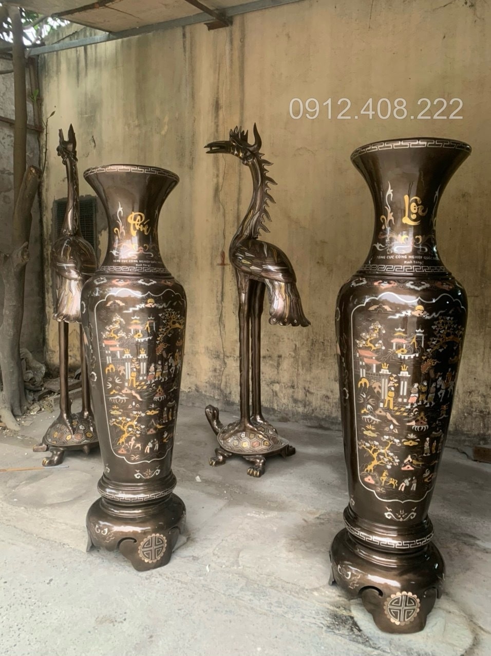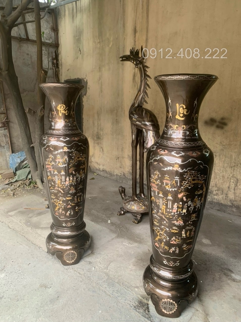 Tên sản phẩm: Đôi Lọ Lộc Bình Vinh Quy Bái Tổ Khảm Tam Khí Cao 1M6 Cao Cấp