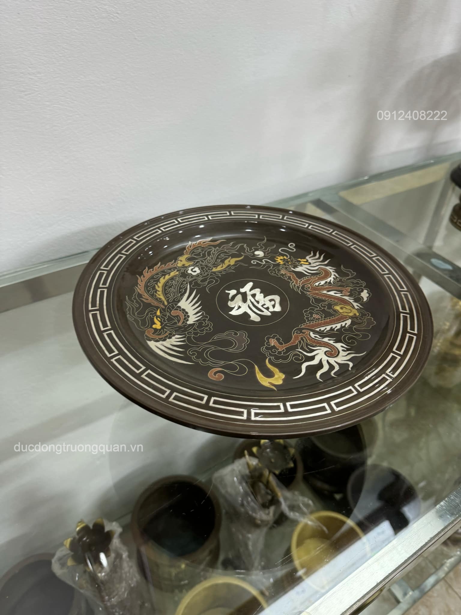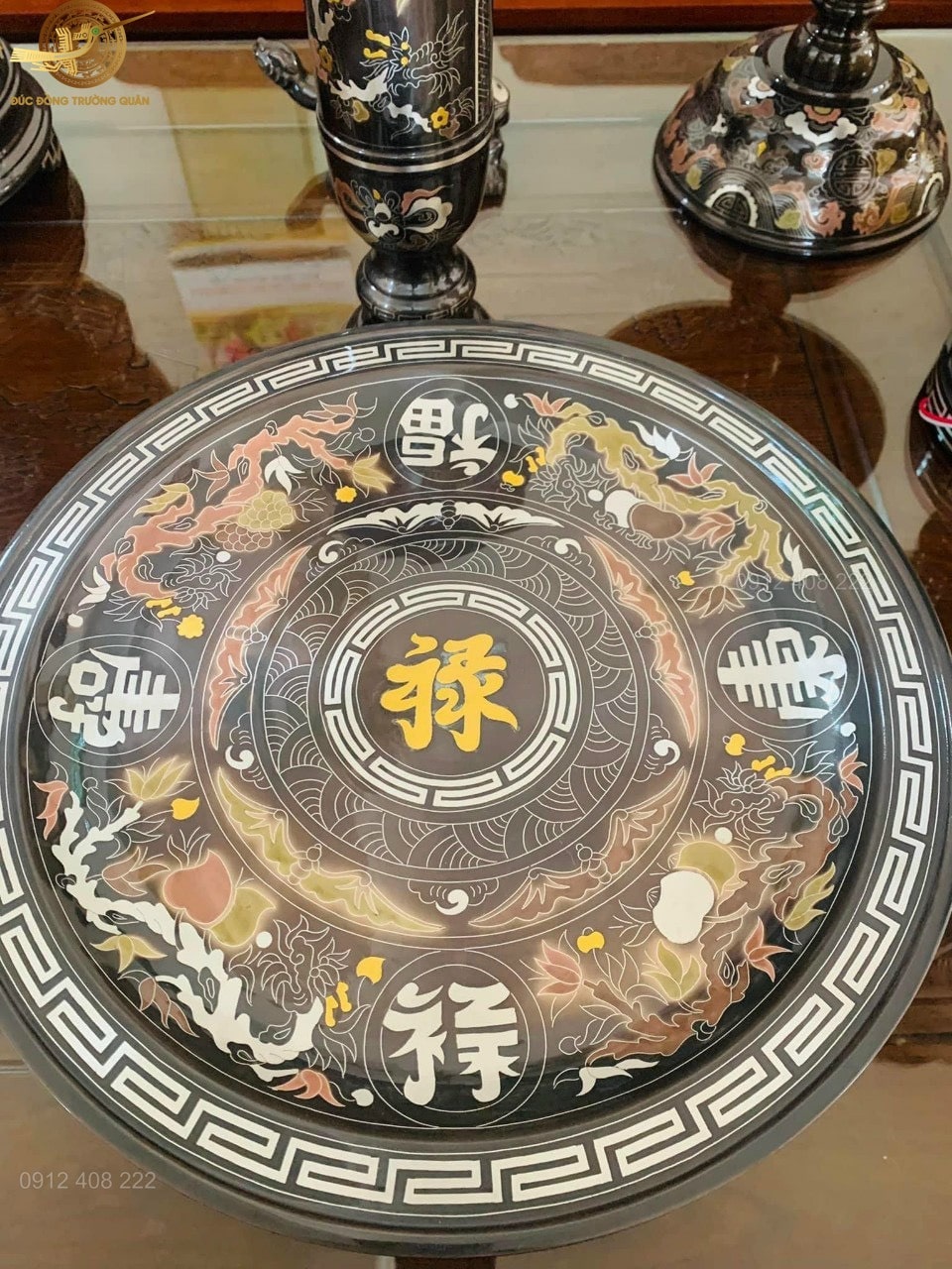 Bề mặt mâm bồng được khảm vàng, bạc đồng màu mang đến sự sang trọng