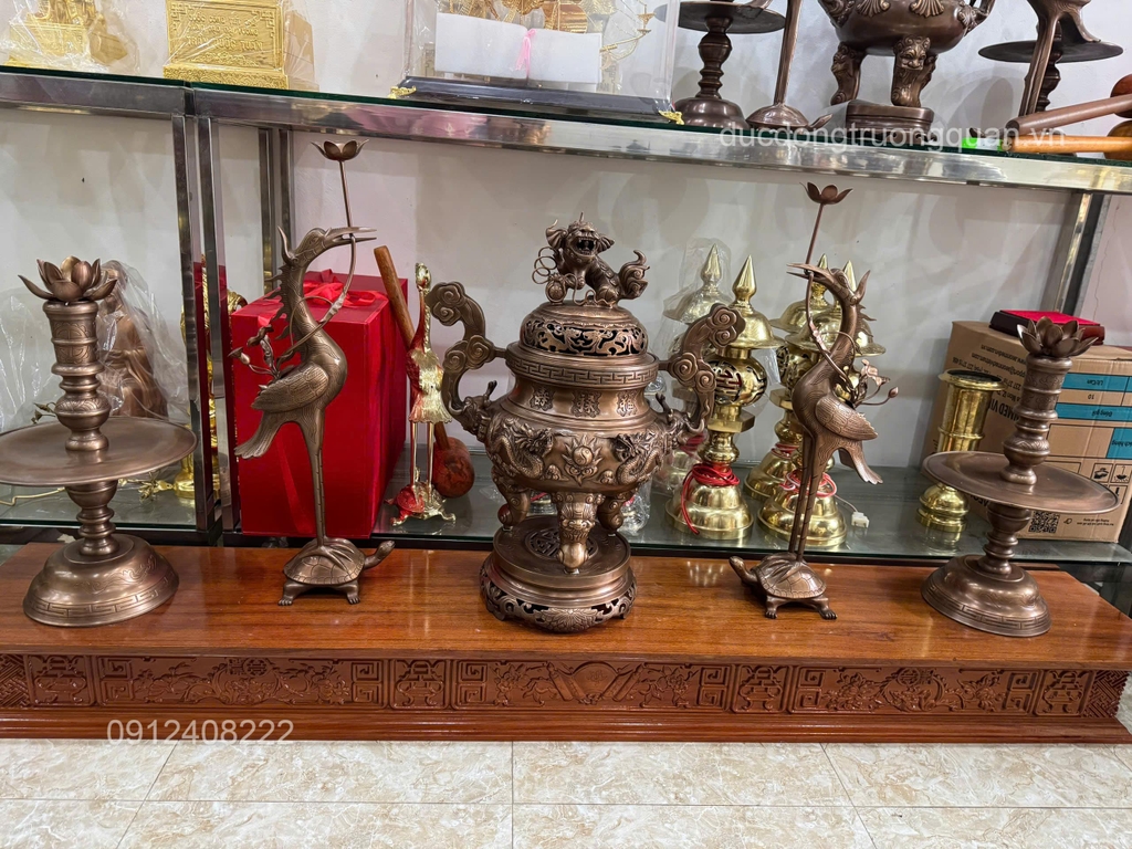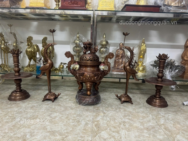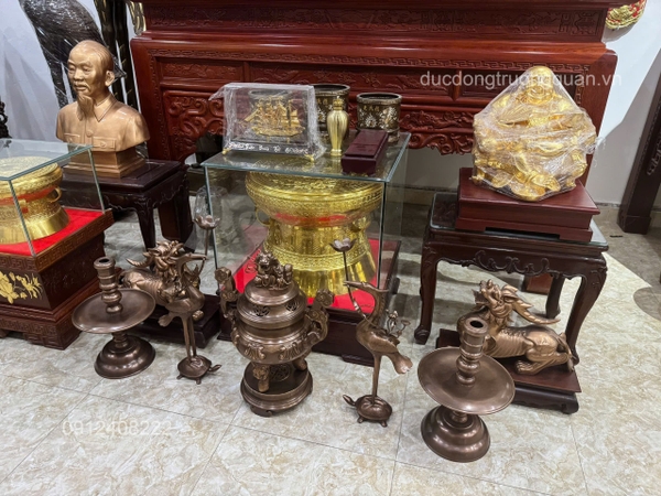 + Nhược điểm: Làm từ kim loại quý cho nên đồ thờ bằng đồng có giá thành cao hơn những chất liệu từ sứ, gỗ; các sản phẩm được đúc thủ công khá nặng và có thể bị xuống màu theo thời gian (nhưng nhiều khách hàng lại thích điều này).
