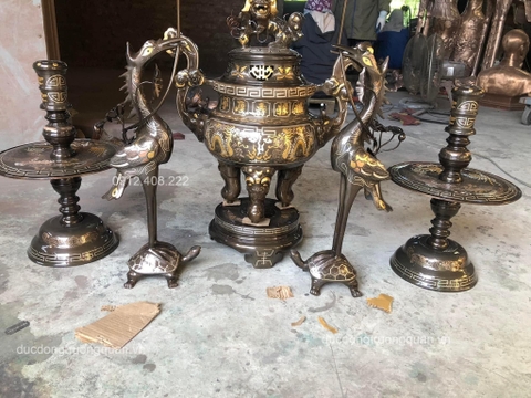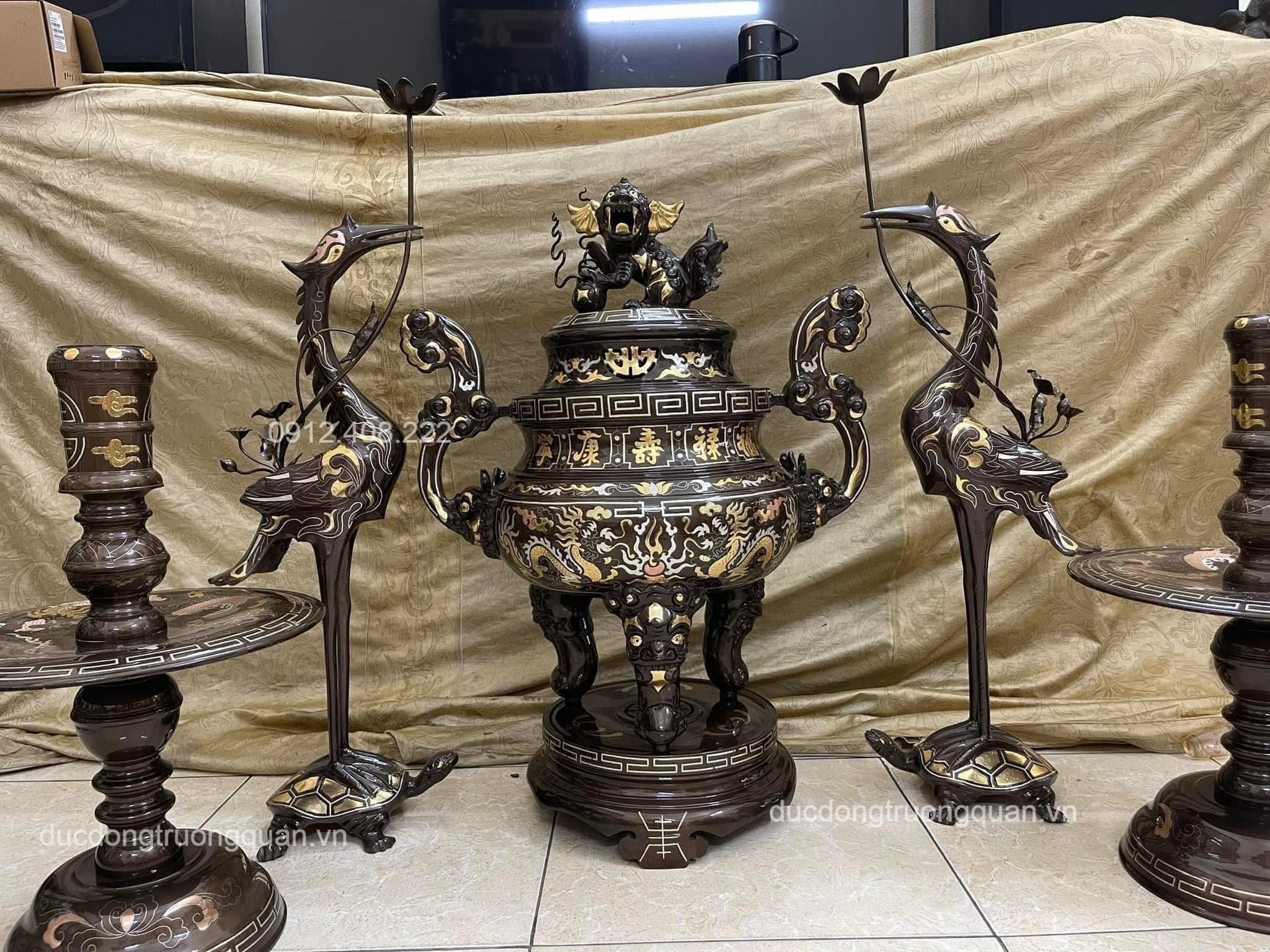 Bộ ngũ sự bao gồm : lư hương , đôi hạc và chân nến