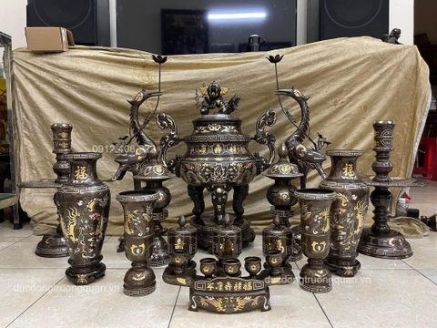 -Bộ đỉnh Ngũ Sự Khảm Tam Khí Dát Điểm Vàng 24k