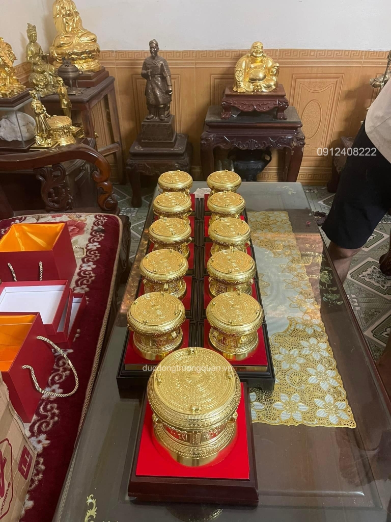 Quả Trống Đồng Mini Dát Vàng 9999 Cao Cấp (có Cóc) - Đúc Đồng Trường Quân không chỉ được nhiều gia chủ dùng để trang trí, trưng bày trong không gian sống, mà còn là món quà tặng ý nghĩa dành tặng đối tác kinh doanh vào những dịp đặc biệt.