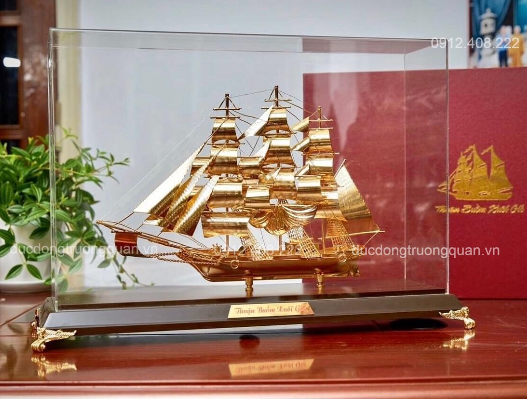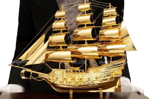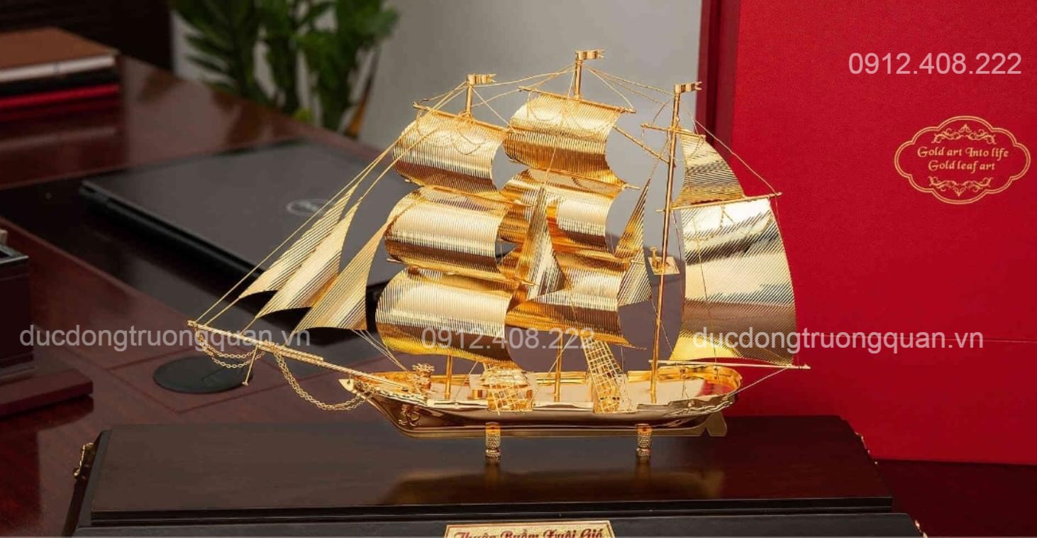 Mô hình thuyền buồm mạ vàng 24k - 365 ngày thuận lợi thành công