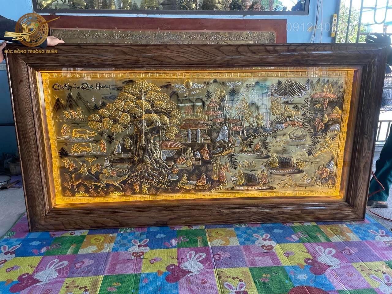 Bức Họa Cội Nguồn Quê Hương được chuyển thể sang chất liệu đồng cực đẹp và cuốn hút, tranh được Đúc Đồng Trường Quân chế tác và hoàn thiện độc quyền, chạm thủ công bằng đồng vàng dày 8rem độ dày tiêu chuẩn cao nhất với hàng đặt, hàng kỹ, khung gỗ trò chỉ đẹp đục tứ quý.