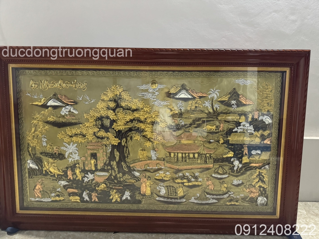 Thông tin chi tiết vật phẩm: Tranh Cội Nguồn Quê Hương Dát Tam Khí Khung Gỗ Lim 2M55.