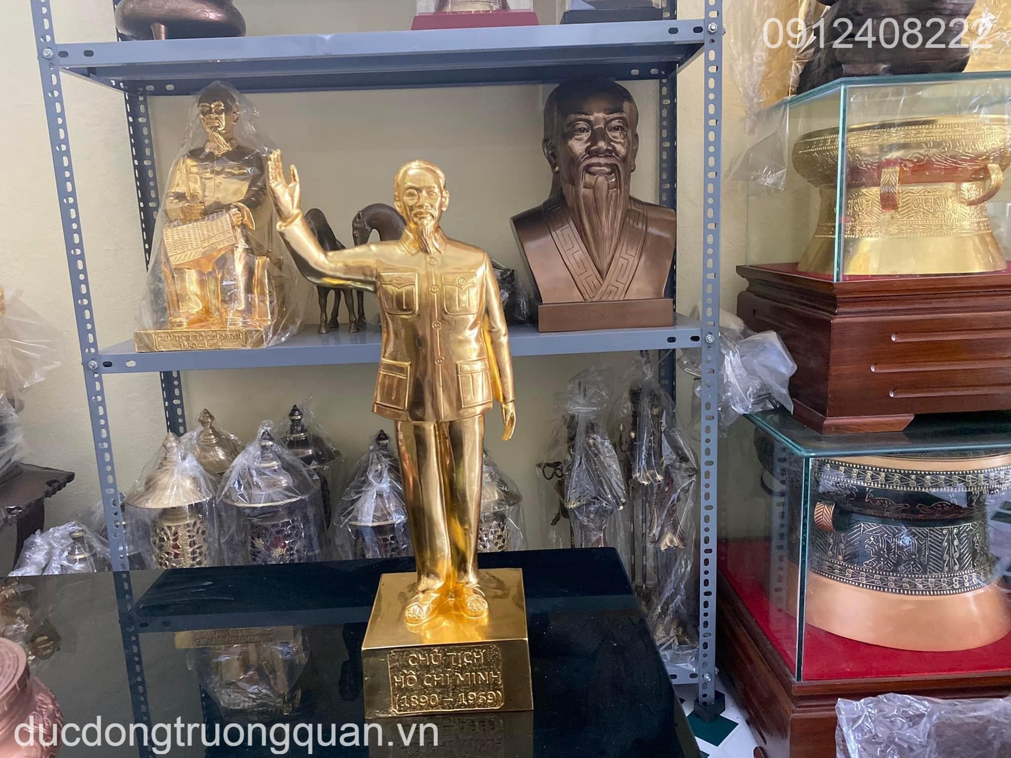 Mẫu tượng Bác Hồ đứng vẫy tay chào bằng đồng cao 42cm dát vàng 9999