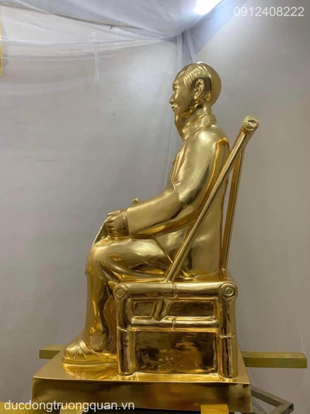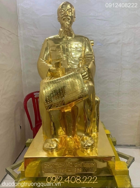 Tượng Bác Hồ ngồi ghế mấy bằng đồng 42cm dát vàng 9999