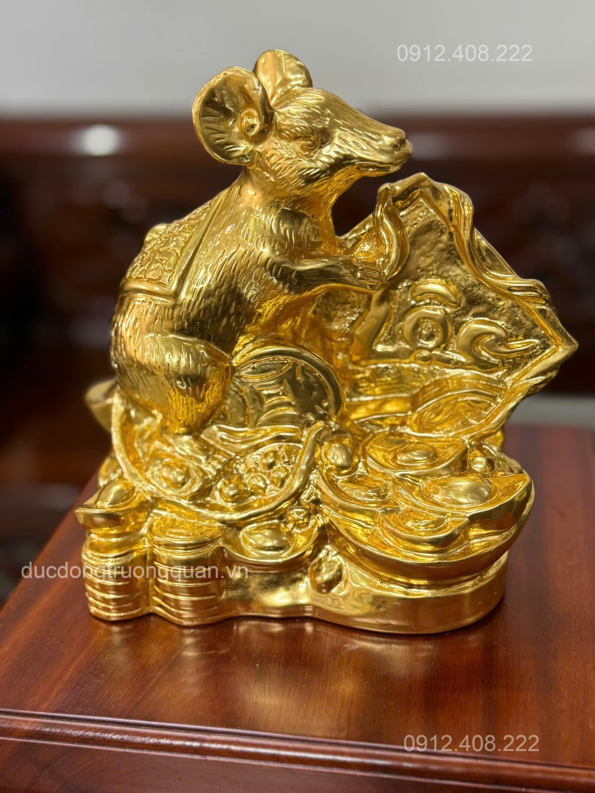 Tượng chuột tài lộc bằng đồng vàng cao 22cm thếp vàng 9999 thích hợp với không gian nào?