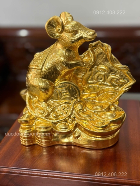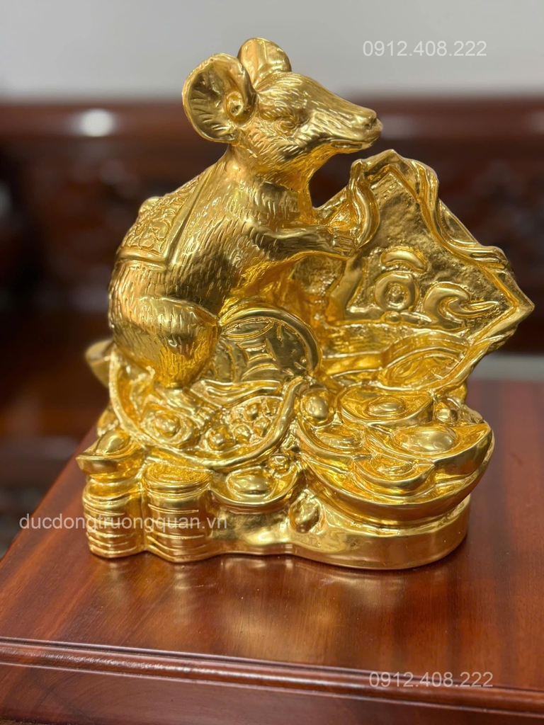 Đây là mẫu tượng chuột được chế tác đúc thủ công , nguyên khối từ chất liệu đồng đỏ. Bề mặt sản phẩm được thếp vàng 9999 đem lại chất màu cực sáng đẹp và đẳng cấp. Tượng cũng phủ ngoài một lớp sơn trong suốt tăng độ sáng bóng và cách ly sản phẩm khỏi các tác động của môi trường.
