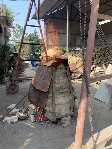 + Rót đồng: Sau khi đồng đã được nấu sôi, tiến hành rót đồng vào khuôn. Qúa trình rót phải được diễn ra rất cẩn thận, chậm và đều để đồng có thể đi hết vào các chi tiết nhỏ mà không sợ đồng bị đông cứng nhanh.