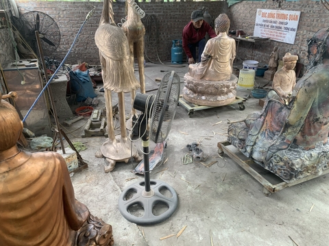 + Sửa nguội và hoàn thiện: Sau khi đỏ đồng cần chờ tượng nguội hẳn rồi tiến hành dỡ khuôn. Lúc này, các người thợ sẽ tiến hành mài dũa, cắt bỏ ba via, chạm ám hoa văn và hoàn thiện toàn bộ sản phẩm.